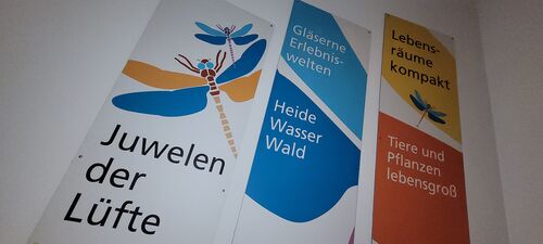Als Leittier für die Ausstellung wurde die Libelle gewählt. Diese Tierordnung ist nicht auf einen einzigen Lebensraum beschränkt, sondern wird im gesamten Naturparkgebiet in einer großen Artenvielfalt angetroffen. Libellen bilden so ein perfektes Bindeglied zwischen den typischen niederrheinischen Lebensräumen. Gleichzeitig sind sie aufgrund ihrer Entwicklung ein idealer Mittler zwischen den Elementen Wasser, Erde und Luft.