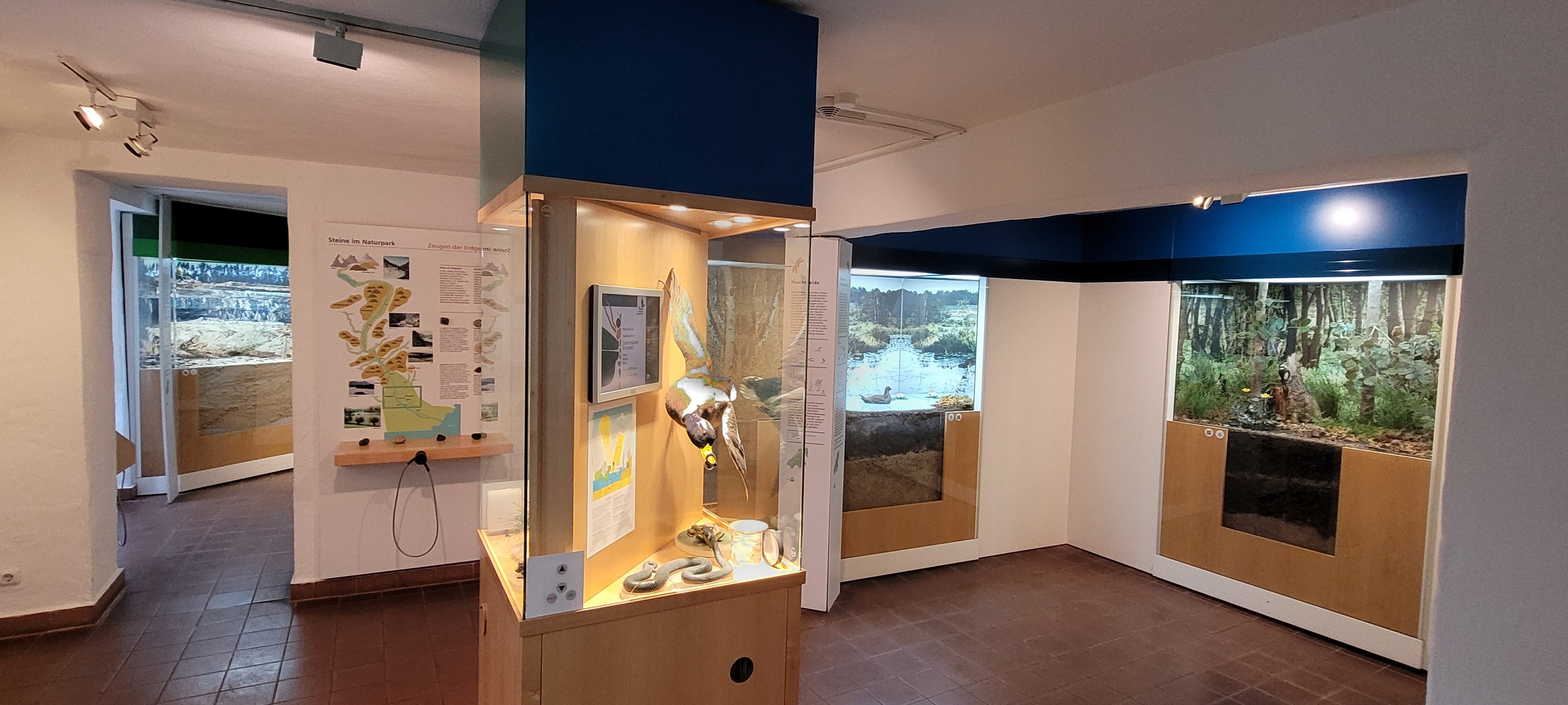 Die Grundinformation über Natur und Landschaft des Naturparks erschließt sich dem Besucher ohne viel Mühe und großes Vorwissen auf Text-Grafiktafeln und in den Dioramen. Dabei wurde auf fachlich reduzierte Texte und eine klare Struktur großer Wert gelegt. Vorgebildeten und besonders interessierten Gästen wird am Computer die Möglichkeit gegeben, sich intensiver mit den Ausstellungsinhalten auseinander zu setzen.